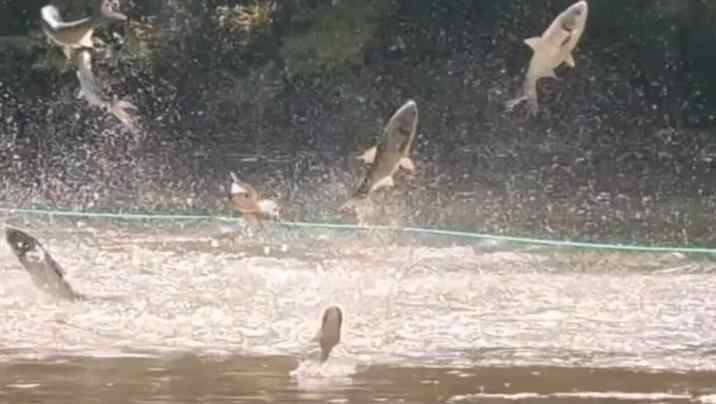 女生游西湖偶遇 “飞鱼群”? 梅雨天鱼儿们集体 “蹦迪”