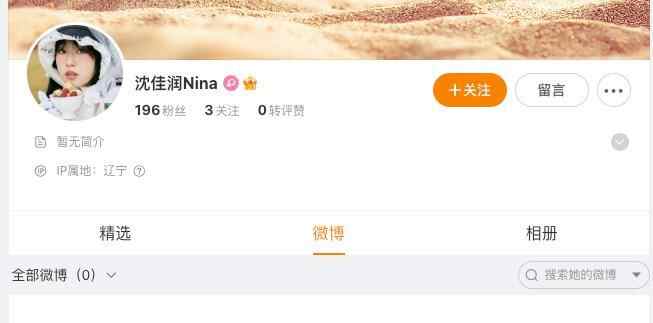 目前,沈佳润已开通微博,但暂还未发布任何内容。截至发稿,仅有近200名粉丝,关注了小沈阳。