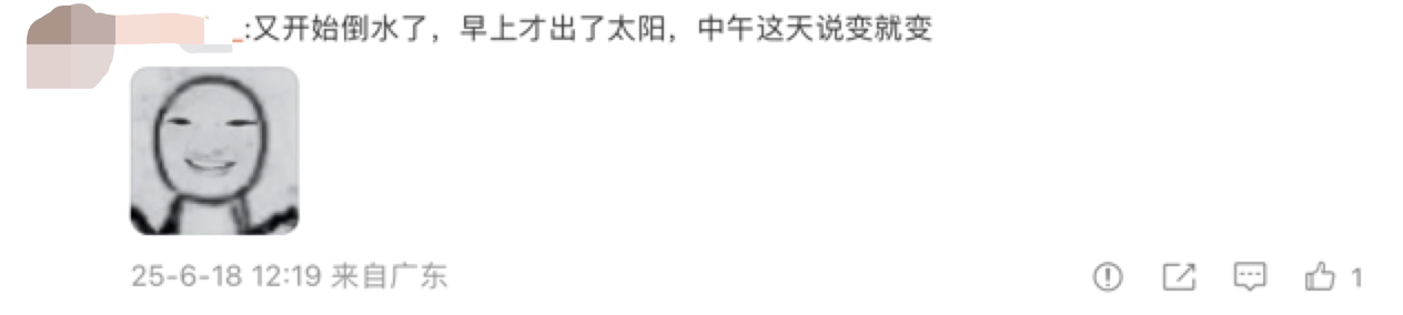 昨天,广东处于副热带高压边缘,多地下起了“散装”雷雨。有网友表示:已经非常想念有太阳的日子了;又开始倒水,早上才出了太阳,天气说变就变。