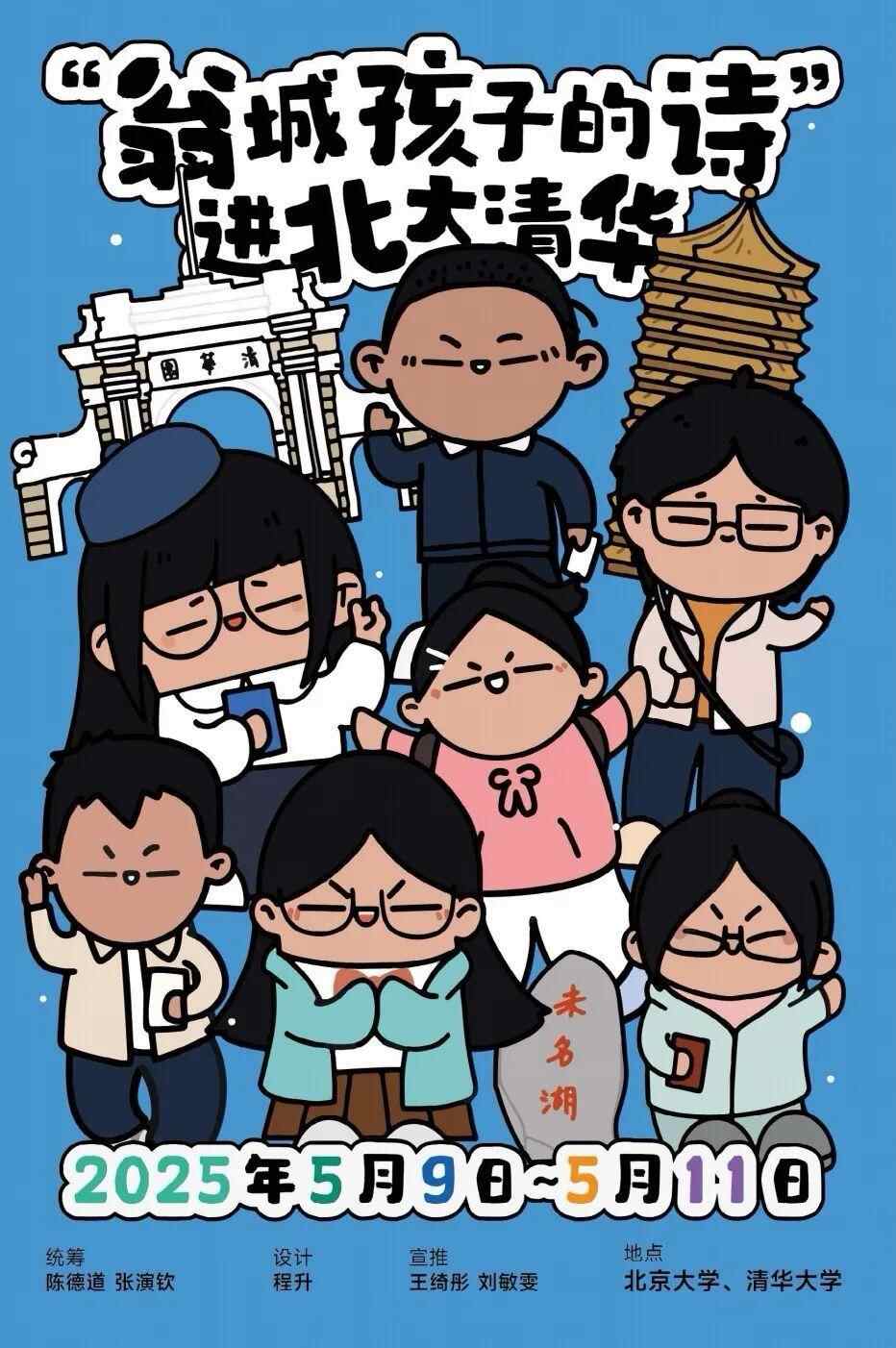 《海报里的翁城故事》还在精雕细琢中。程升甚至推翻了原来的版式。她设计的很多海报都很精彩,“翁城孩子的诗进北大清华”尤为突出。最简约笔墨,最生动表达。