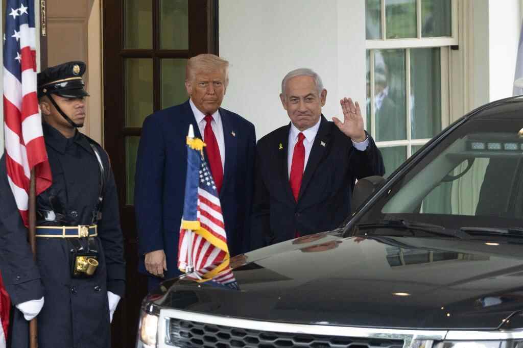 2025年4月7日,美国总统特朗普在华盛顿白宫迎接到访的以色列总理内塔尼亚胡。新华社记者 胡友松 摄