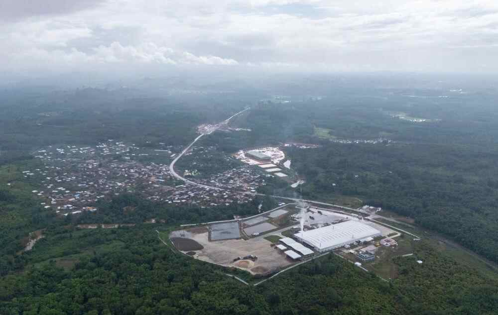 这是2025年5月30日在科特迪瓦圣佩德罗省大贝雷比镇拍摄的中国企业美兰集团投产的橡胶加工厂(无人机照片)。新华社记者 王冠森 摄