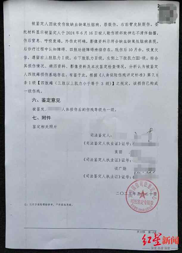 4月案件庭审时,李辉在原告席上尽力克制情绪,盯着被告人席张某没有表情的脸,想起原本精明的36岁妹妹李莉,为保护13岁的女儿,在2024年6月16日,被张某入室抢劫后又掐脖施暴,送医后脸部肿胀得无法辨认,虽然保住了命,但患上了缺血缺氧性脑病,大脑萎缩程度如90岁老人。经过1年多治疗花费近百万元,李莉仍存在认知、肢体功能障碍,住院中生活不能自理。