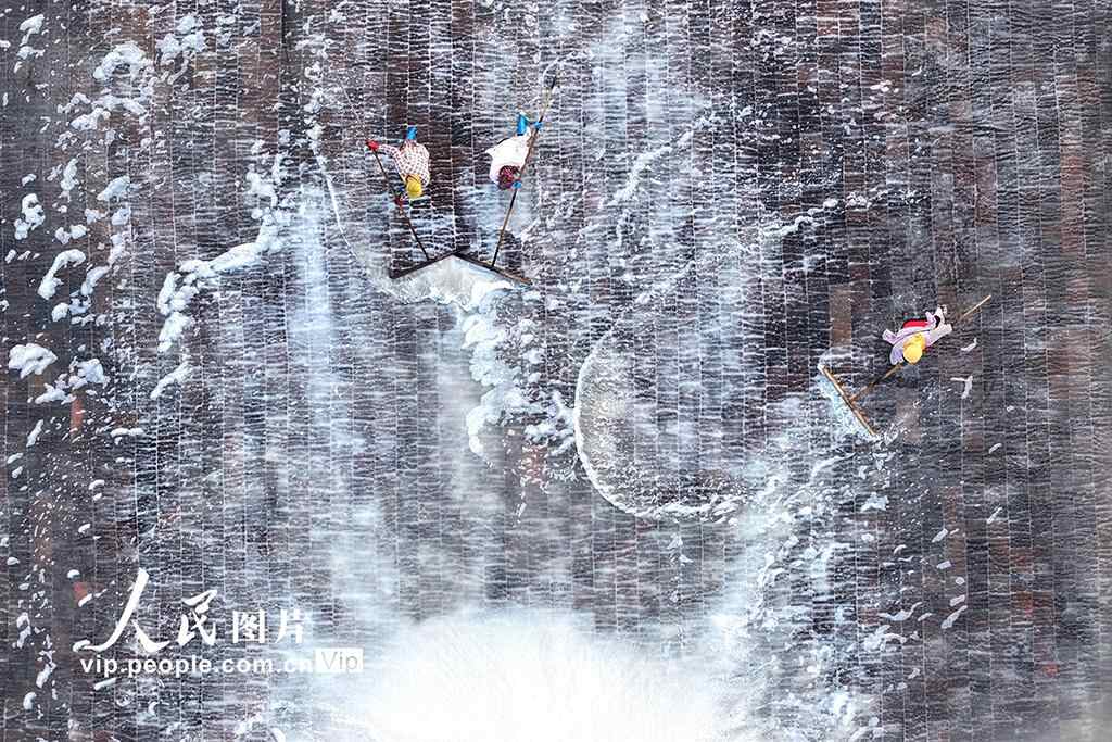 2025年6月12日,盐农在福建省泉州市泉港区的山腰盐场收盐。王旺旺摄(人民图片网)