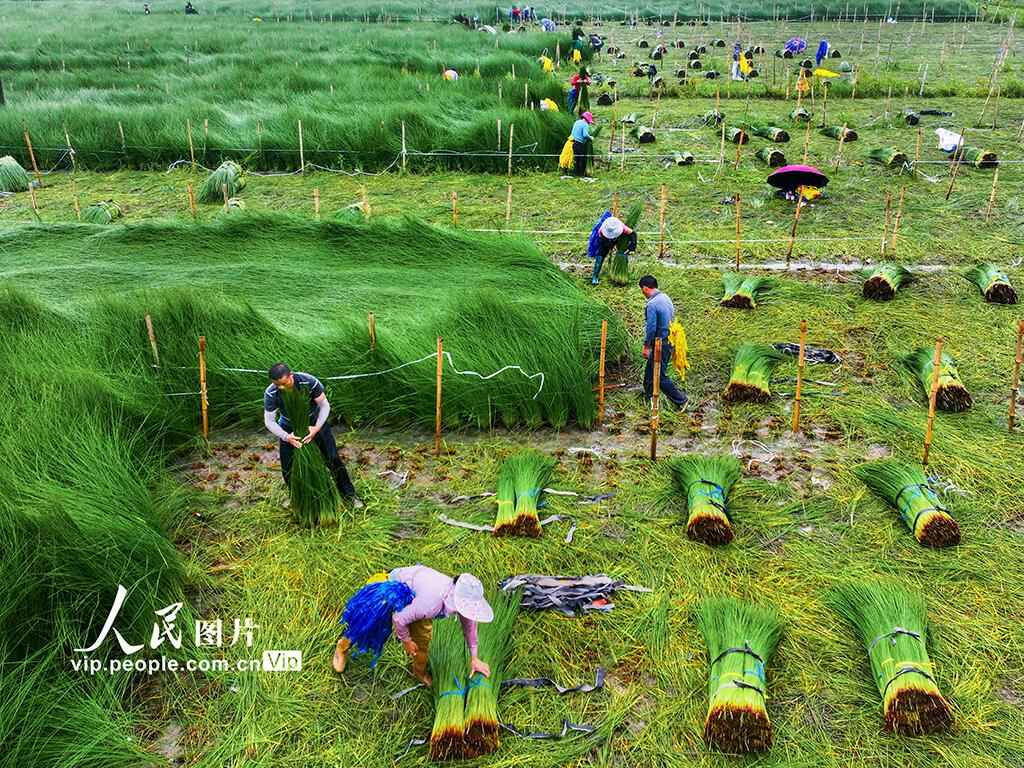 近日,浙江省宁波市海曙区集士港、古林、高桥等地的蔺草进入收割季。