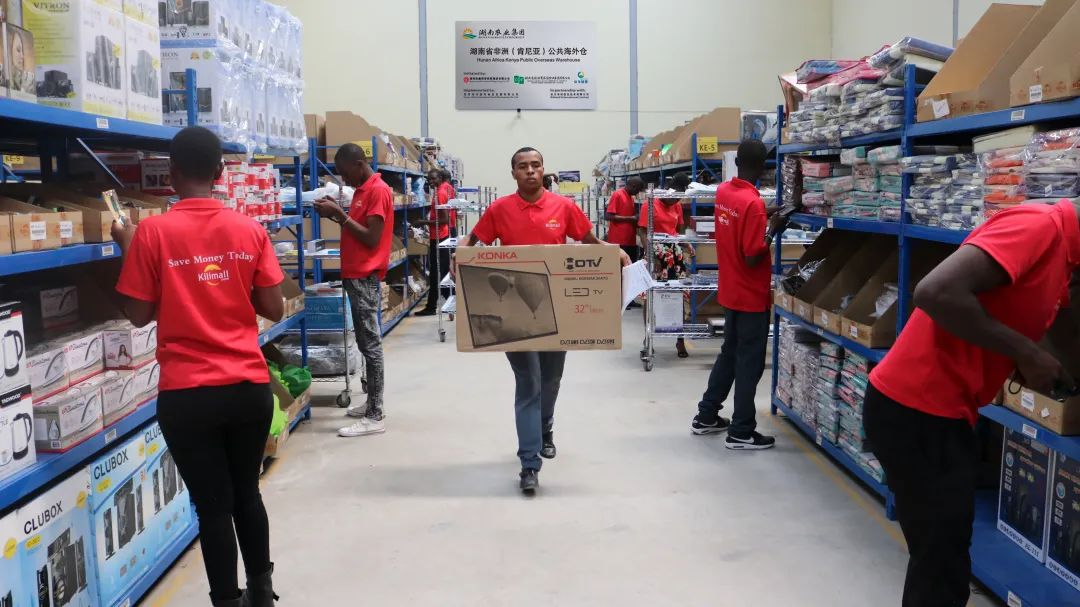 ▲湖南省非洲(肯尼亚)公共海外仓内,当地员工正在理货。