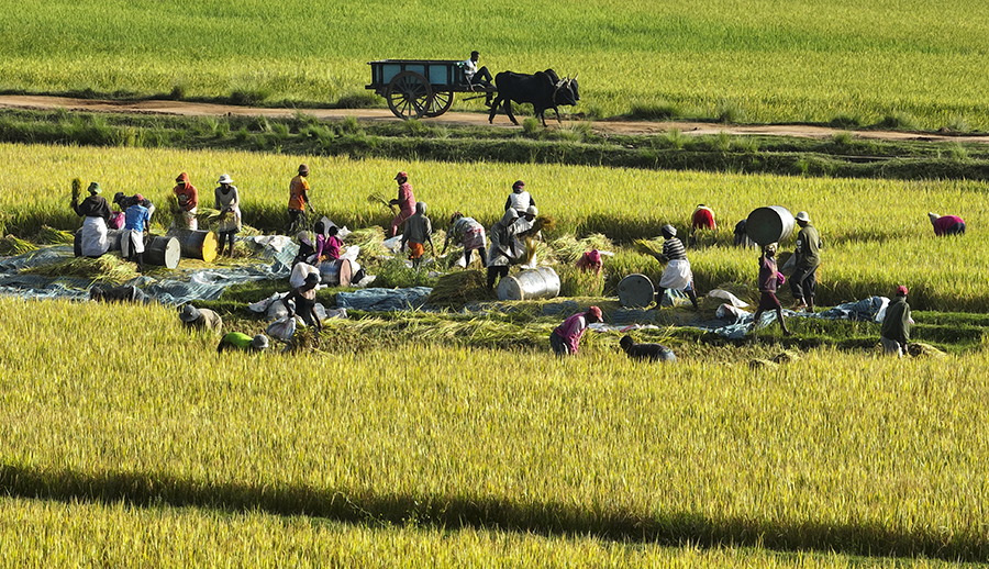 ▲2023年6月,马达加斯加农民在收割杂交水稻。(图源:湖南省人民政府网站)