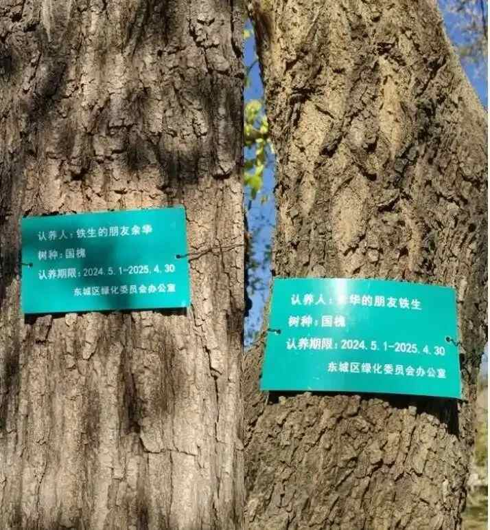 5月4日,记者联系上地坛公园。公园工作人员表示,这两棵树并非余华本人认养,是普通游客认养的。