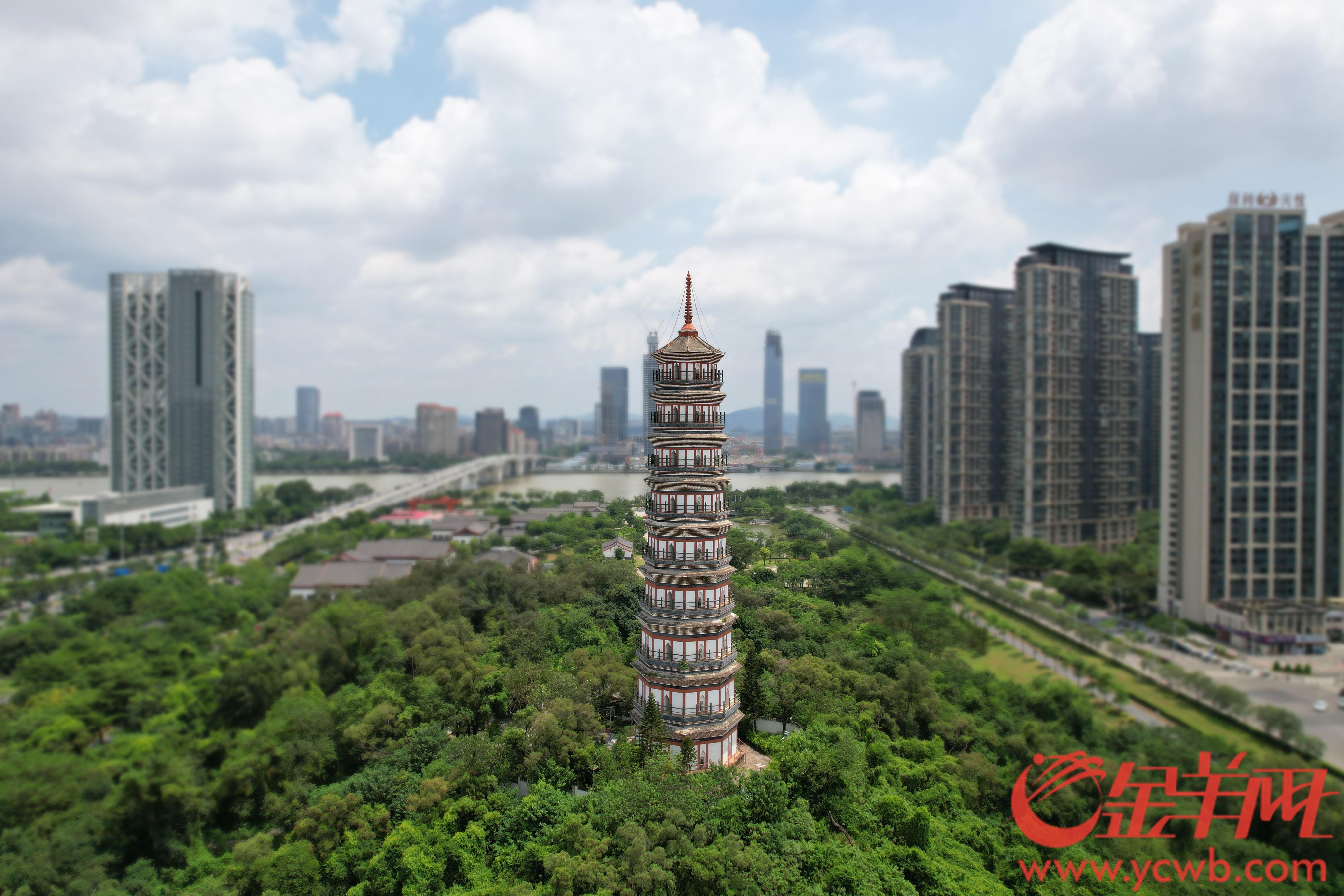 在山上建琶洲塔,在当时为船舶起到了“导航”的作用,引领着源源不断的满载货物的外国商船进出,促进了广州的海洋商贸。清乾隆“一口通商”时期,黄埔古港千帆蚁聚,琶洲塔以中流之势守望万国商船,见证陶瓷茶叶远销寰宇。而今古塔与会展中心交辉,仍在续写“千年商都”的开放基因。
