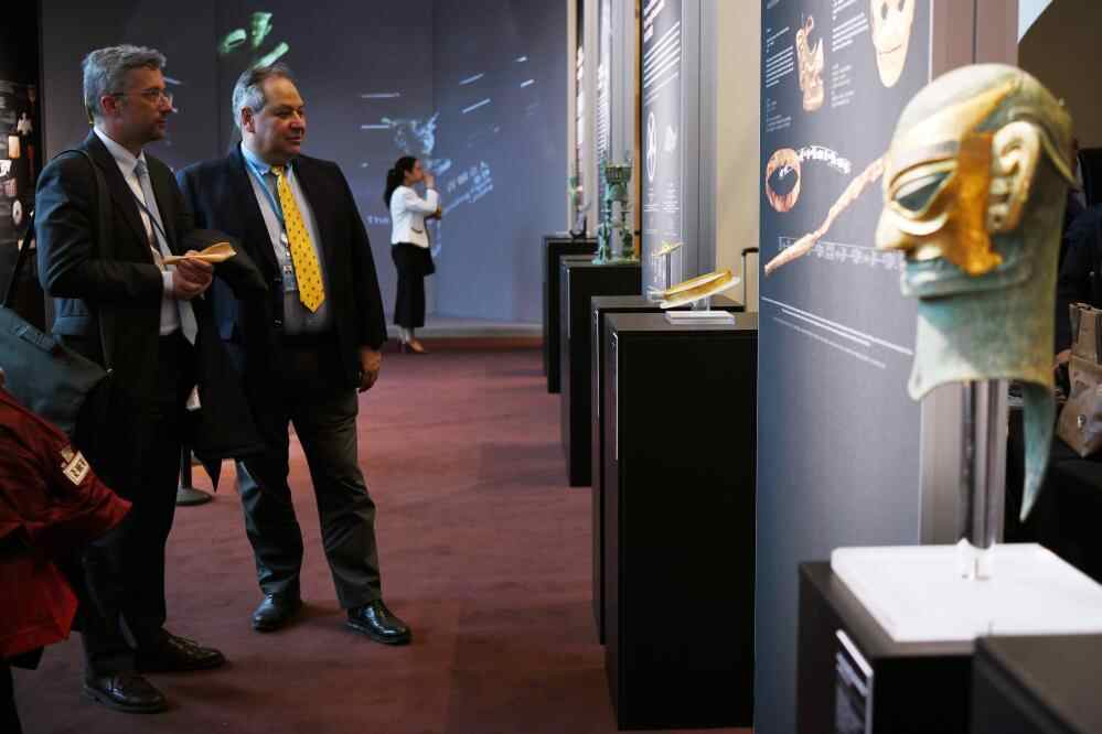 6月9日,在位于纽约的联合国总部,人们参观“太阳之光——古蜀文明与世界”展览。该展览9日在联合国总部揭幕,旨在以文明对话为纽带,助力推动全球文明交流互鉴。新华社记者 李睿 摄