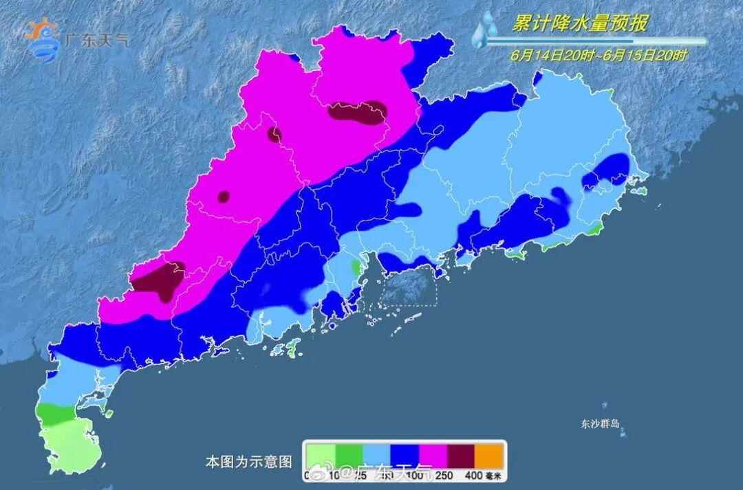 14日夜间-15日白天,粤西、云浮、肇庆、清远、韶关和粤东市县有暴雨到大暴雨,局部特大暴雨,其余市县有大雨到暴雨局部大暴雨。