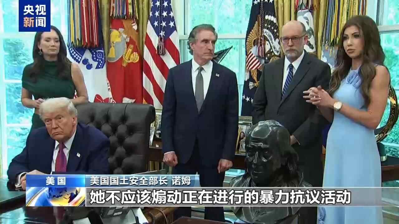 美国国土安全部长 诺姆:辛鲍姆站了出来,鼓动在洛杉矶进行更多的抗议活动。我谴责她的行为,她不应该煽动正在进行的暴力抗议活动。