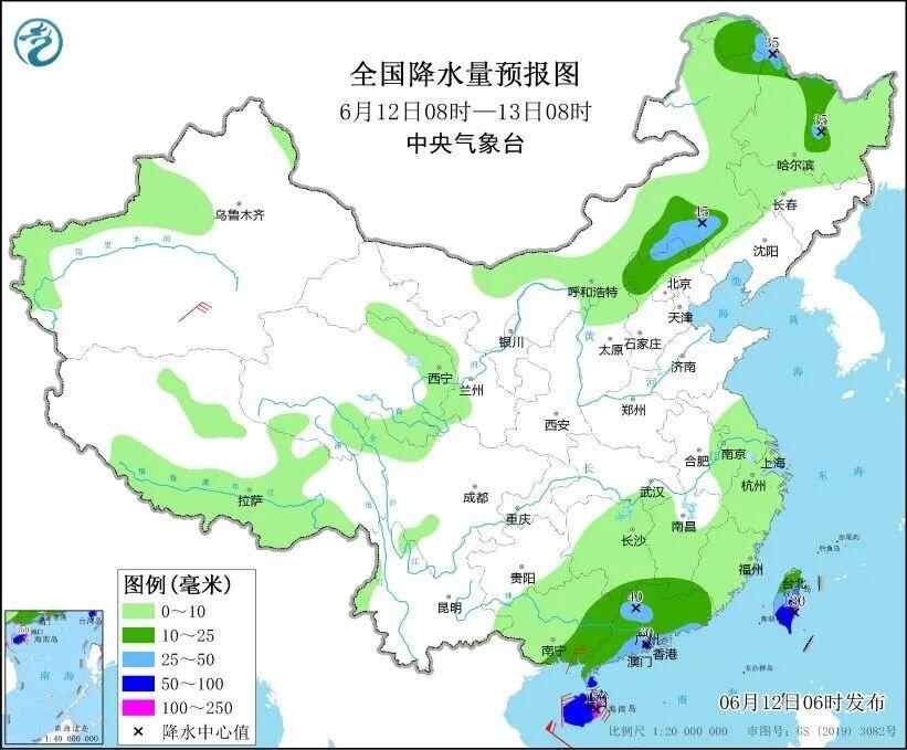中央气象台12日10时发布暴雨蓝色预警,预计,12日14时至13日14时,广西南部、广东中南部、海南岛、台湾岛大部以及内蒙古东南部、河北北部等地部分地区有大到暴雨,其中,海南岛东部和西南部、台湾岛南部等地局地有大暴雨。