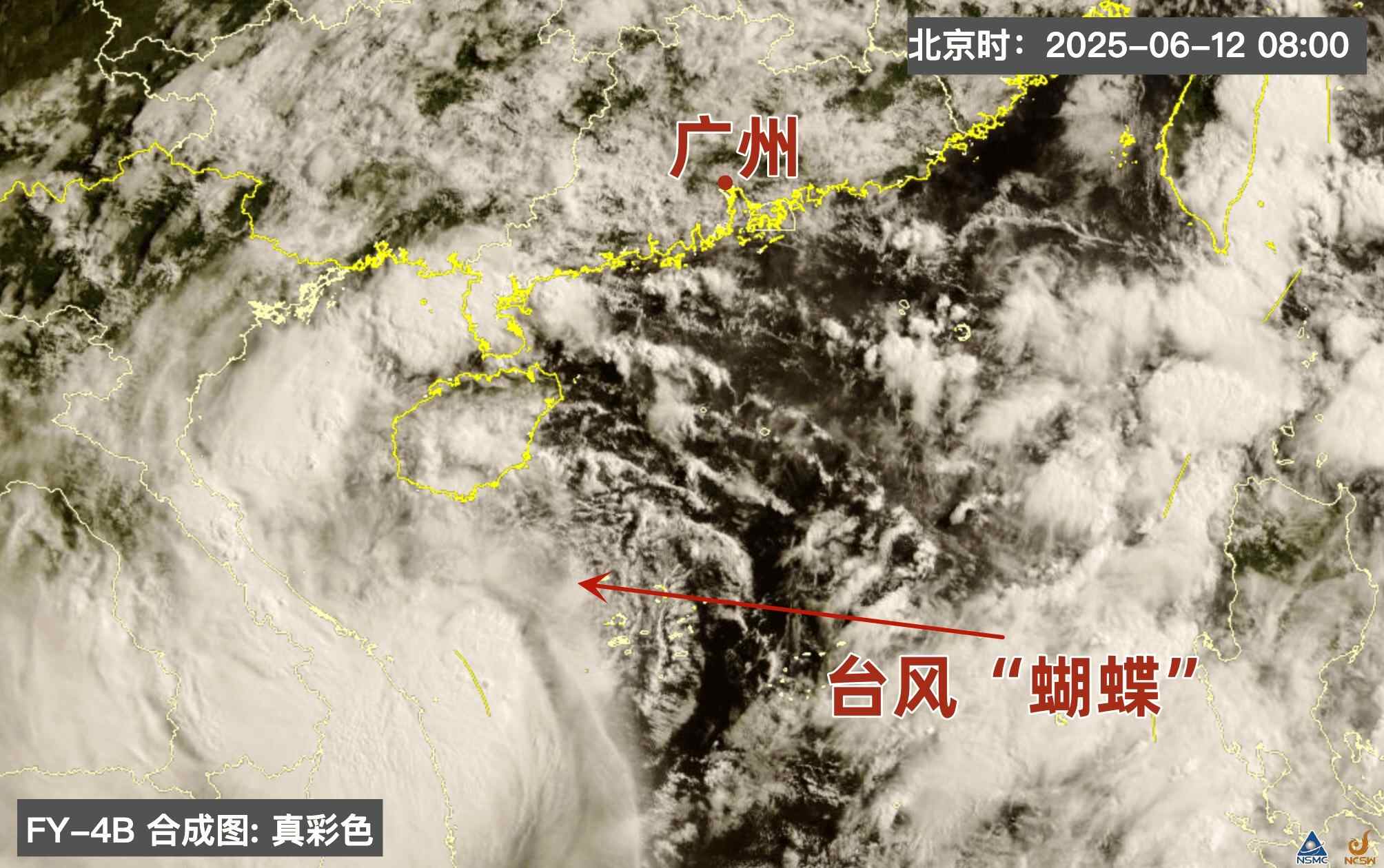 根据广东省气象部门观测,截至12日8时,“蝴蝶”(热带风暴级)中心位于海南省三亚市东南方向约155公里的海面上(北纬17.1度、东经110.3度),中心附近最大风力8级(20米/秒)。