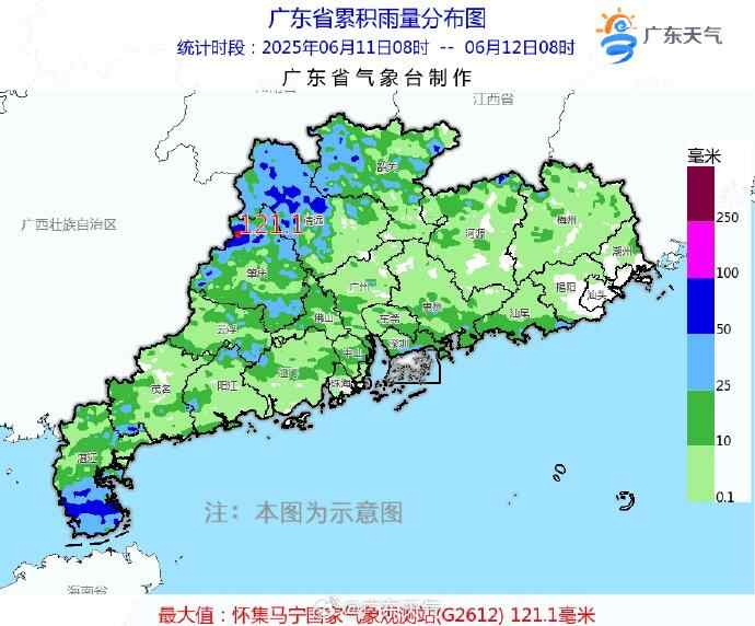 12日余下时间,粤西、珠三角南部市县和汕尾有大雨到暴雨局部大暴雨,广东其余市县有雷阵雨局部暴雨,雷雨时伴有8~10级短时大风。