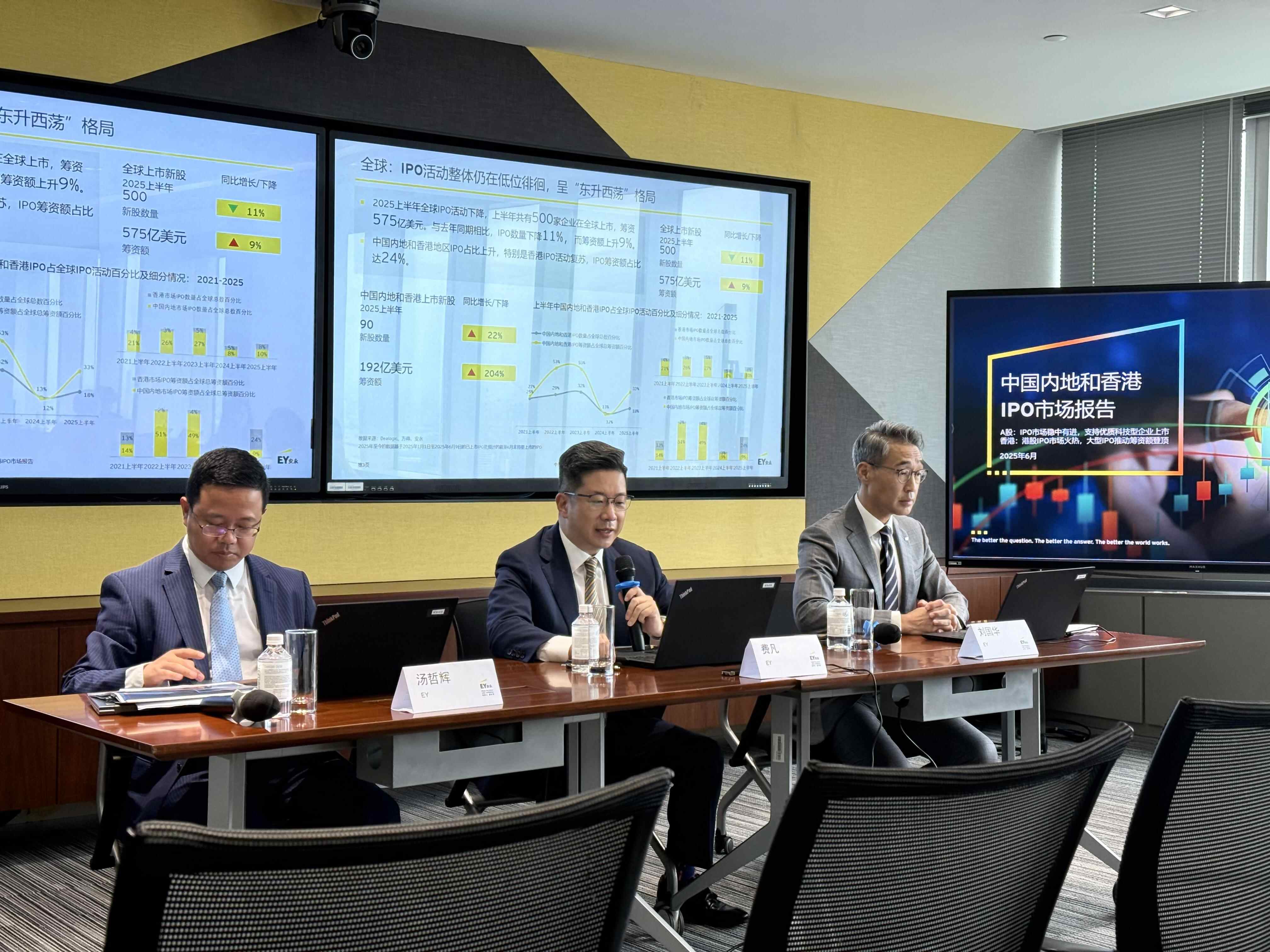 6月12日,安永在上海发布2025上半年《中国内地和香港IPO市场报告》。