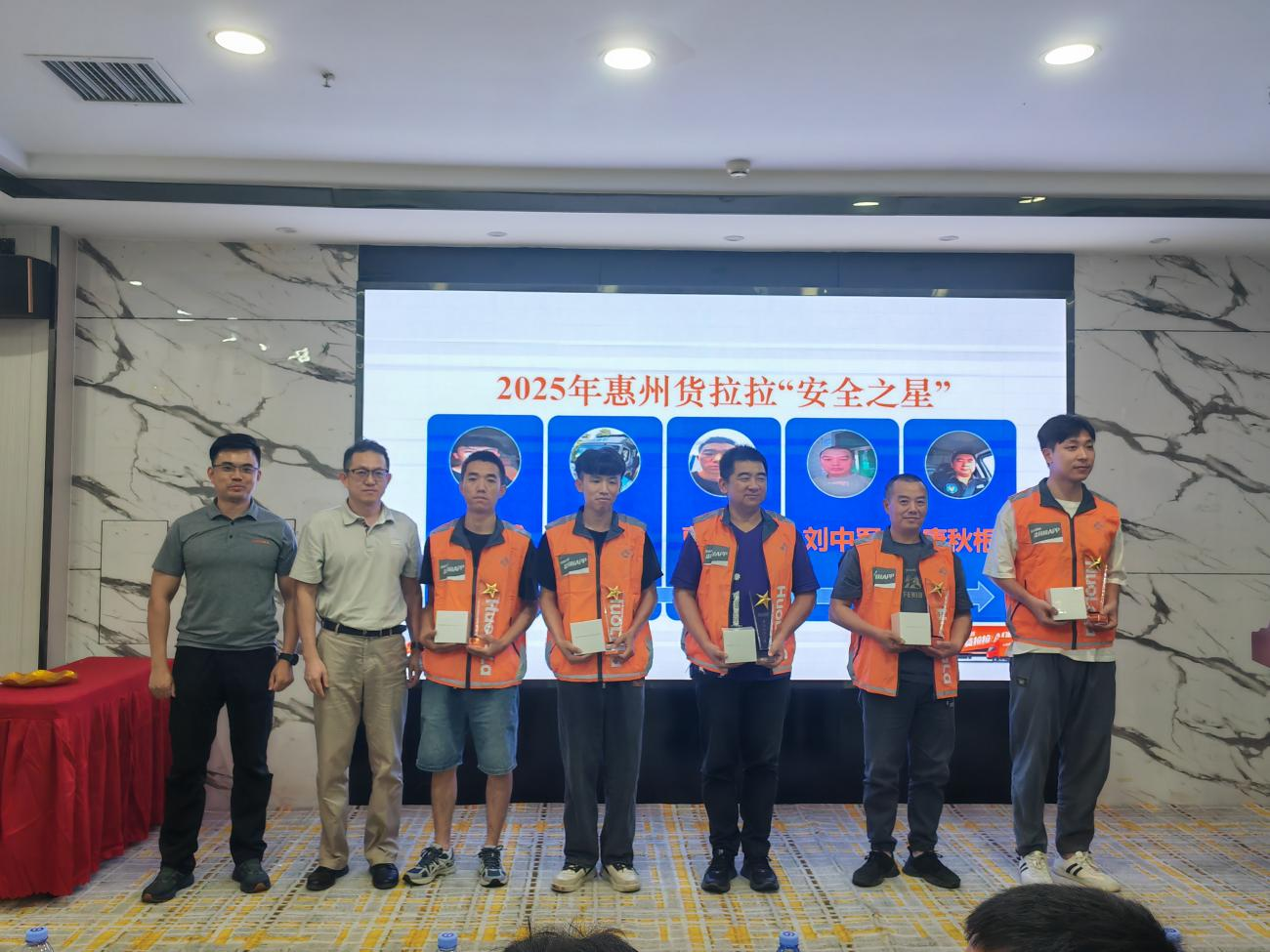 通过对过去一年(2024年5月——2025年5月)惠州货拉拉司机服务订单的严格筛选,平台基于大数据,从日常接单量、驾驶行为、货物安全意识、服务质量等四大维度进行综合考核,并设定了包括“零违章、零投诉、无危险驾驶行为、满分行为分、完成安全培训”等标准。最终,五位司机凭借全年优异表现脱颖而出,荣膺“安全之星”称号。