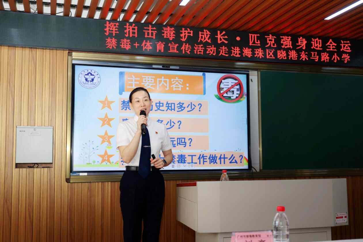 6月9日,在海珠区禁毒办的指导下,广州市司法局禁毒教育馆、昌岗街道禁毒办、广州市心明爱社会工作服务中心“启帆之家”海珠区禁毒社工服务项目等单位走进海珠区晓港东马路小学,开展“禁毒+体育”宣传进校园活动。