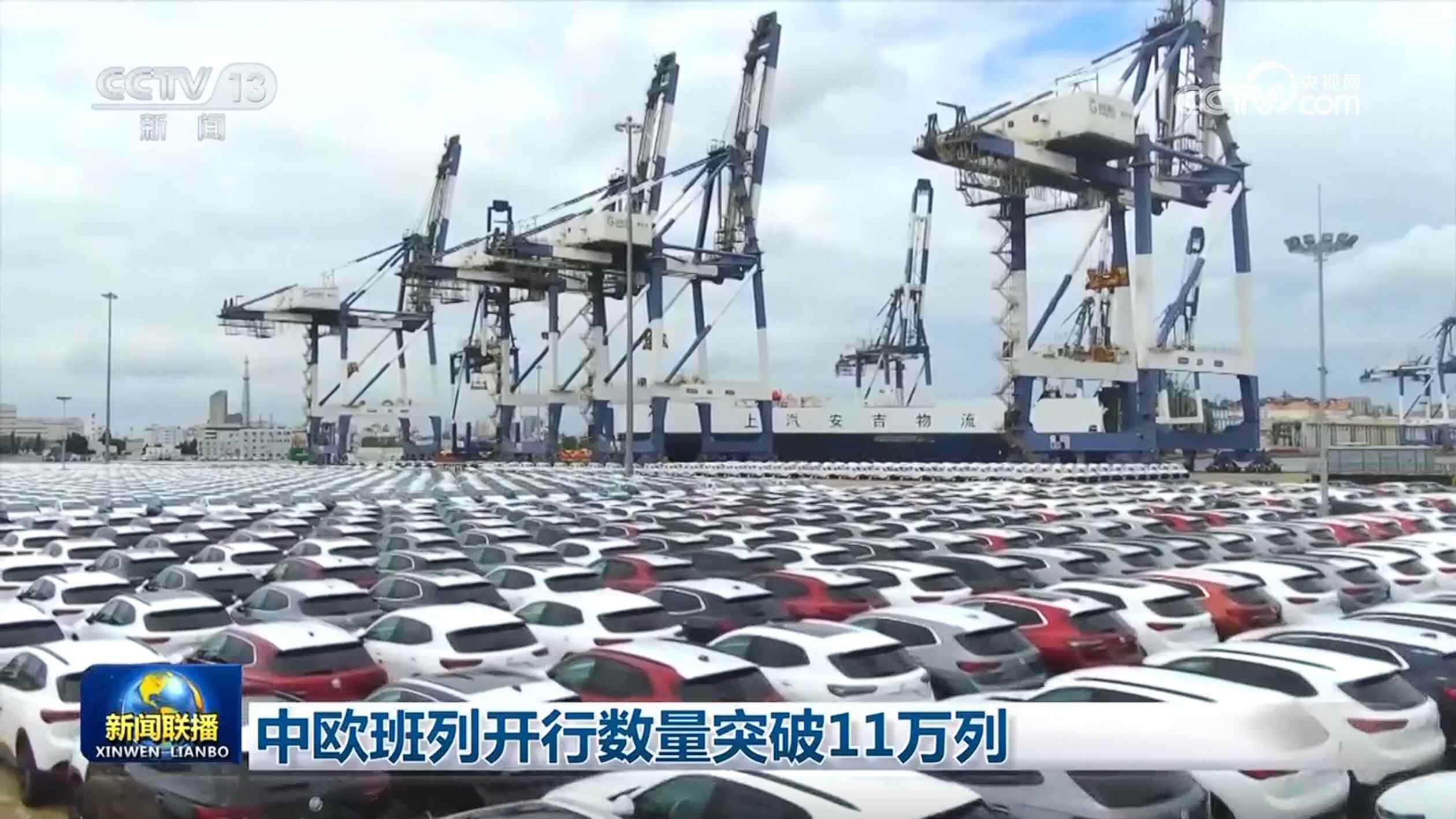 央视网消息(新闻联播):6月10日上午,随着75052次中欧班列从青岛胶州站开出,中欧班列累计开行数量突破11万列,货值超4500亿美元。