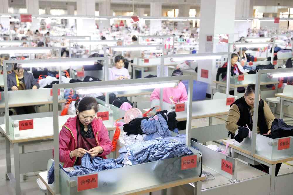 图为深沪镇一家内衣企业,工人们在检验待出厂产品。新华社发