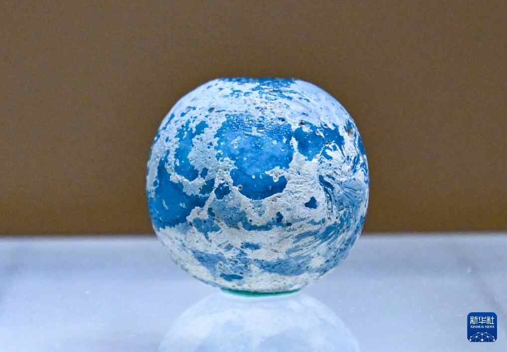 这是展出的淄博市博物馆藏战国琉璃珠(6月10日摄)。