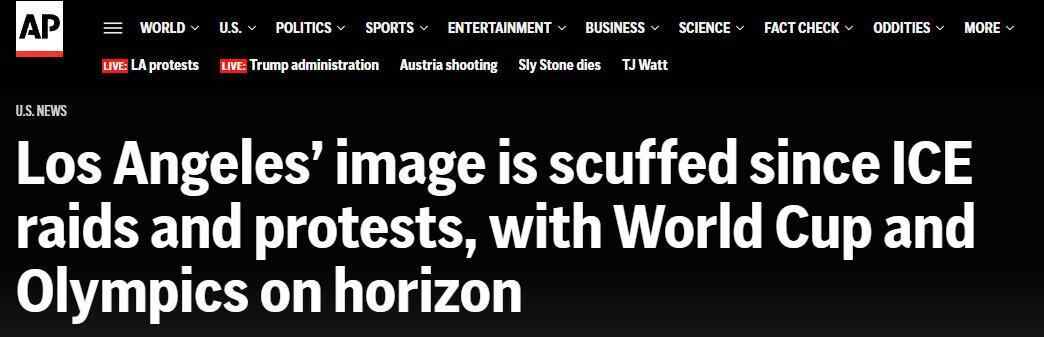 美联社10日发表的评论文章这样评价道:“这并非洛杉矶市希望在全球范围内投射的形象。”