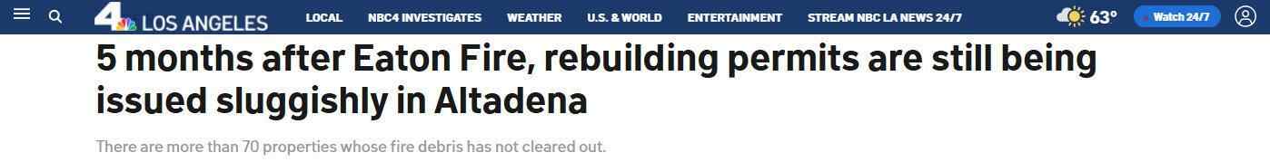 尽管洛杉矶山火爆发至今已经过去约5个月的时间,但截至目前,废墟清理工作仍未完成,建筑重建工作更是仍停留在“审批”阶段。