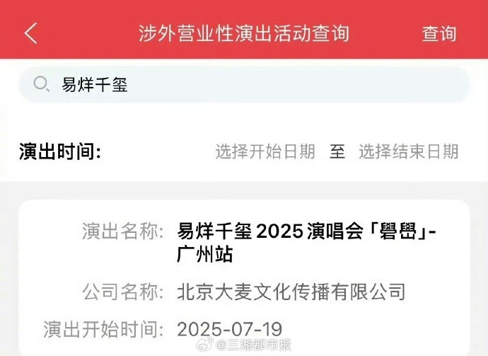 6月11日,记者查询文旅市场通发现,易烊千玺演唱会广州站已获批,定档7月19日开唱,演唱会主题为“礐嶨(què xué)”。礐嶨:指山石嶙峋、坚硬多石的景象或地貌。
