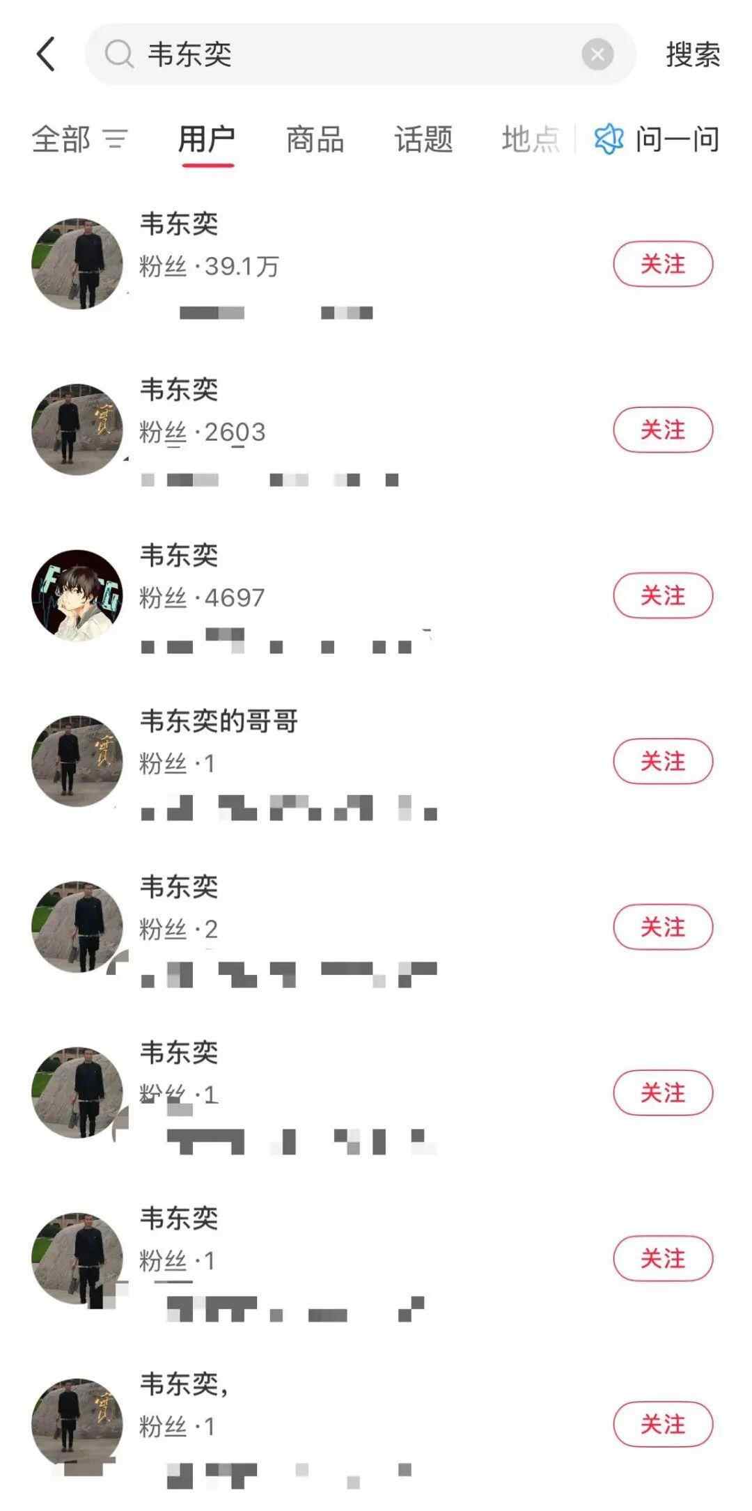 6月11日,记者再次检索发现,该平台用户列表里韦东奕的账号只剩下一个,且粉丝数从39万多涨到了53万多。