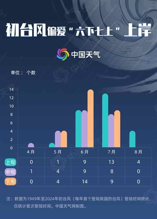 从时间上来看,越是偏晚登陆的初台风,强度越可能偏强。比如1949年以来,登陆我国最晚的初台风“Nina”就是以超强台风级别登陆我国的。