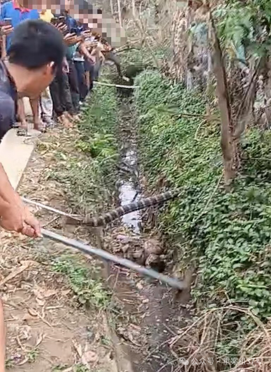 2024年4月3日,该镇村民发现了两条眼镜王蛇(国家二级保护动物),“两条蛇没有咬人,但村民当时很害怕。”红鞋村党支部书记黄先生告诉新京报记者,他了解情况后立刻拨打了119,消防员赶到现场,用工具叉住蛇使其无法动弹。现场视频显示,不少围观村民边拍视频边喊“打死它”,有村民和消防员一起用棍子等工具敲打蛇。黄先生表示,最终两条蛇的尸体被消防员带走。