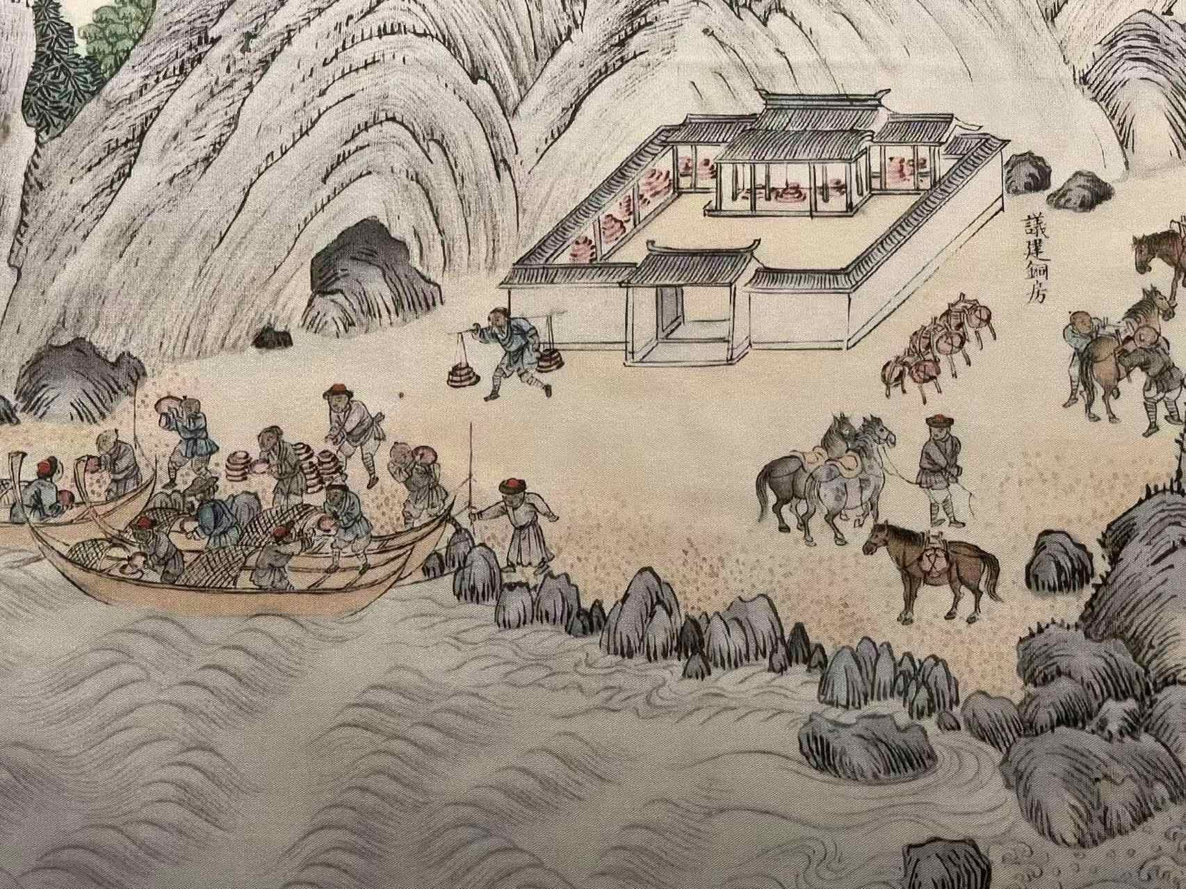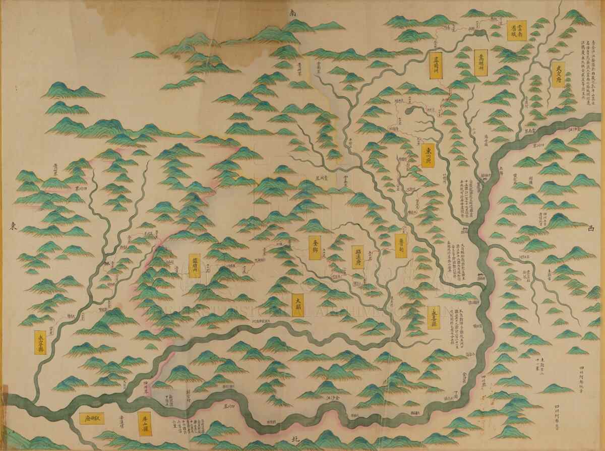 △图上文字:双佛滩离飞云渡滩十五里,系最险滩。两岸大石堆积,石根相连,水从石缝分流,溜急浪涌,自碎琼滩起至此。业经恭折,奏请改修陆路。