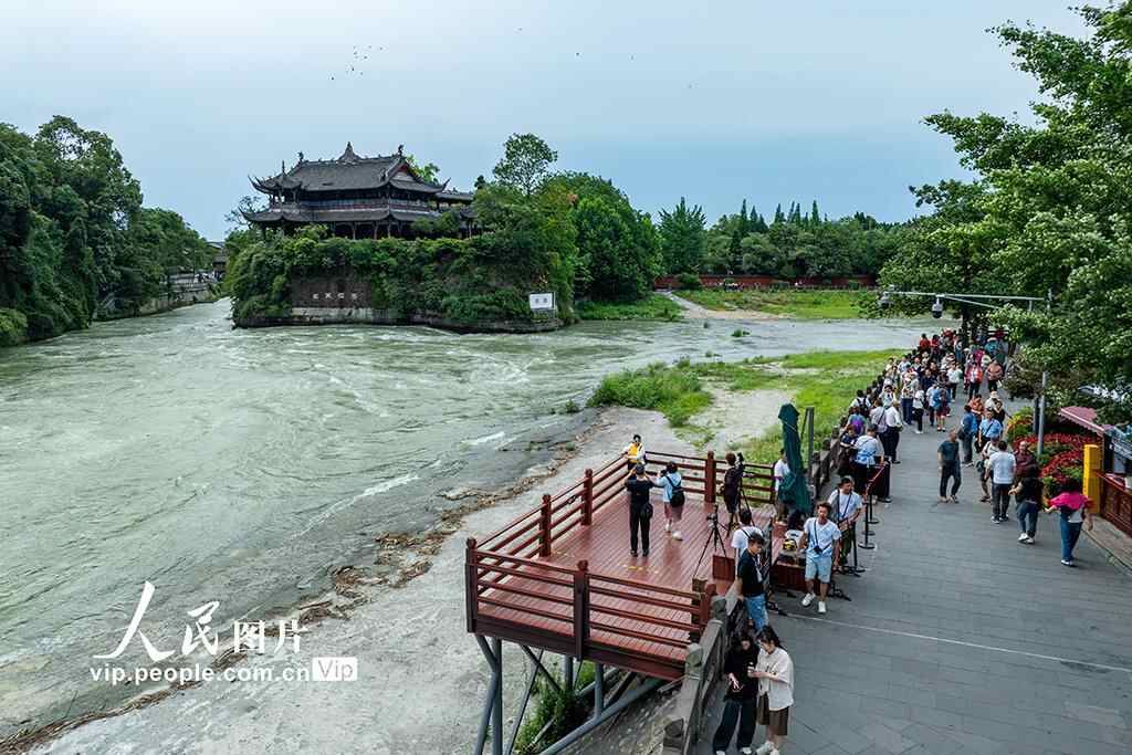 2025年6月9日,游客在四川成都都江堰景区游玩参观。黄胜林摄(人民图片网)