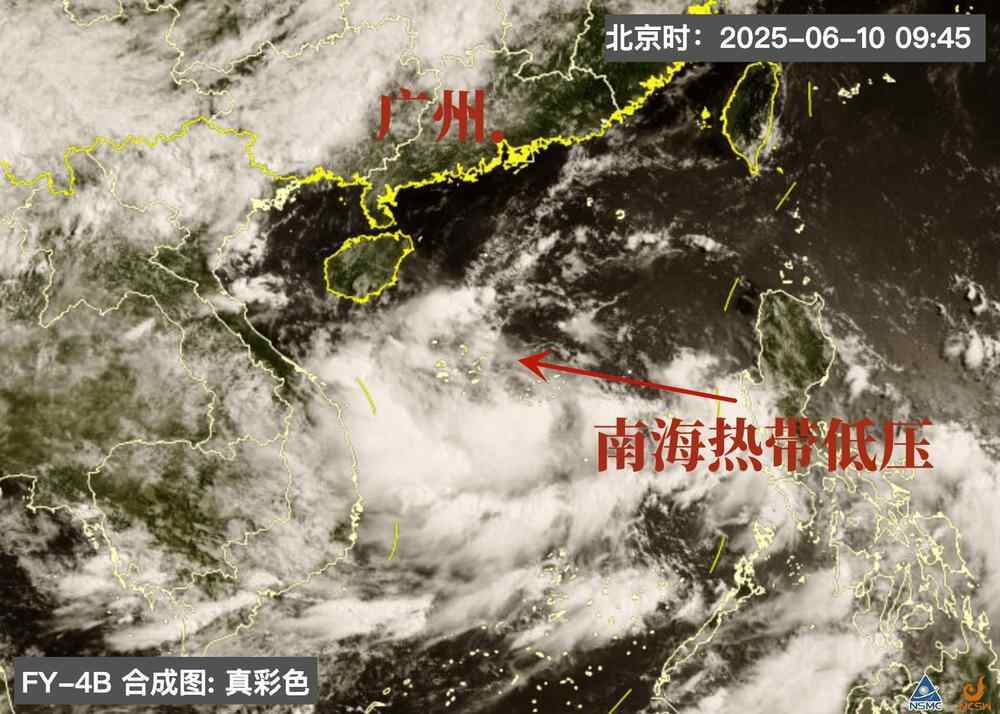 6月10日10时03分,中央气象台发布台风快讯,位于南海的热带扰动,已于10日8时增强为热带低压。