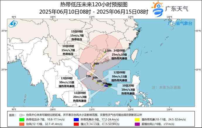 广东省气象部门6月10日上午预计,受南海热带低压及其增强后的系统环流影响,13日至15日,广东将有一次明显的风雨过程,请公众关注广东省气象部门后续发布的预报预警信息。