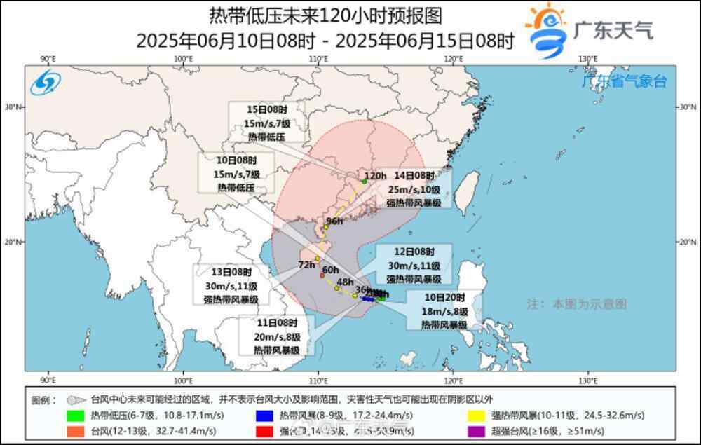广东省气象局6月10日提醒,南海热带低压及其后期增强的系统,将给南海中北部海面和广东海面带来明显风雨影响。海上过往船只、海上作业、海岛和滨海旅游需注意安全,及时避风。