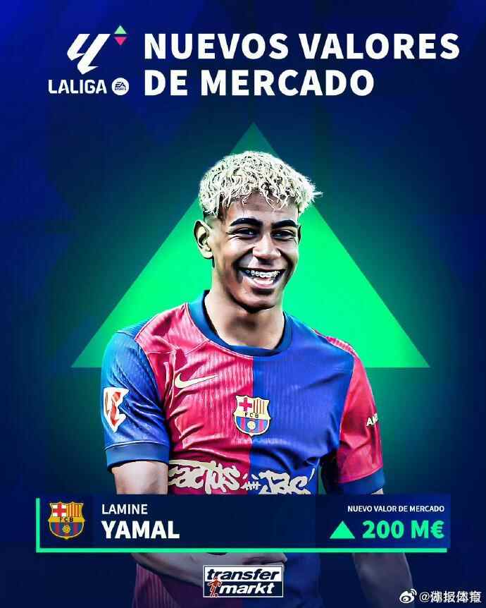 德国转会市场网站更新了西甲球员身价,17岁巴萨新星亚马尔的身价由1.8亿欧 元 涨至2亿欧 元 ,成为当今世界足坛身价最高的球员。维尼修斯的身价由2亿欧 元 降至1.7亿欧 元 ,佩德里的身价则由1.2亿欧元涨至1.4亿欧 元 。