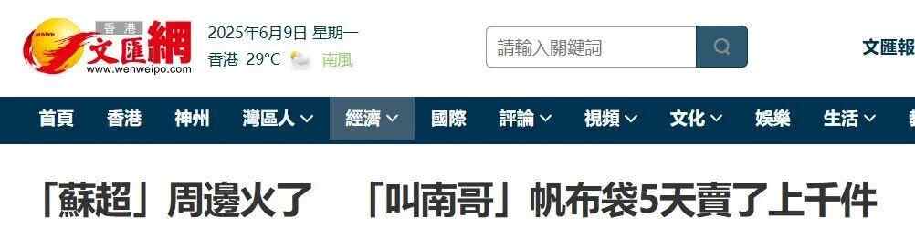 港媒关注到了由赛事引发的文旅消费热潮,文章介绍一款印有“叫南哥”字样的“苏超”周边帆布袋热销,5天卖了上千件。此外,多地还创新推出“持票游景区”优惠政策和“一票多享”模式,推动跨城旅游热潮,带动餐饮、住宿收入增长。