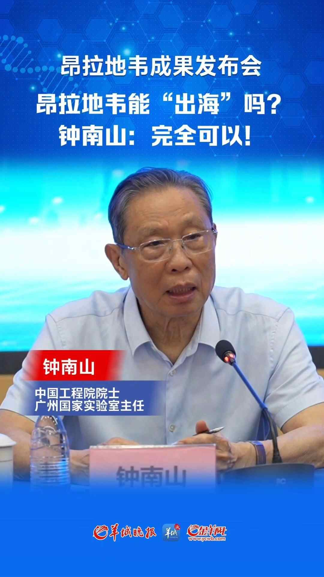 昂拉地韦能“出海”吗?钟南山:完全可以!