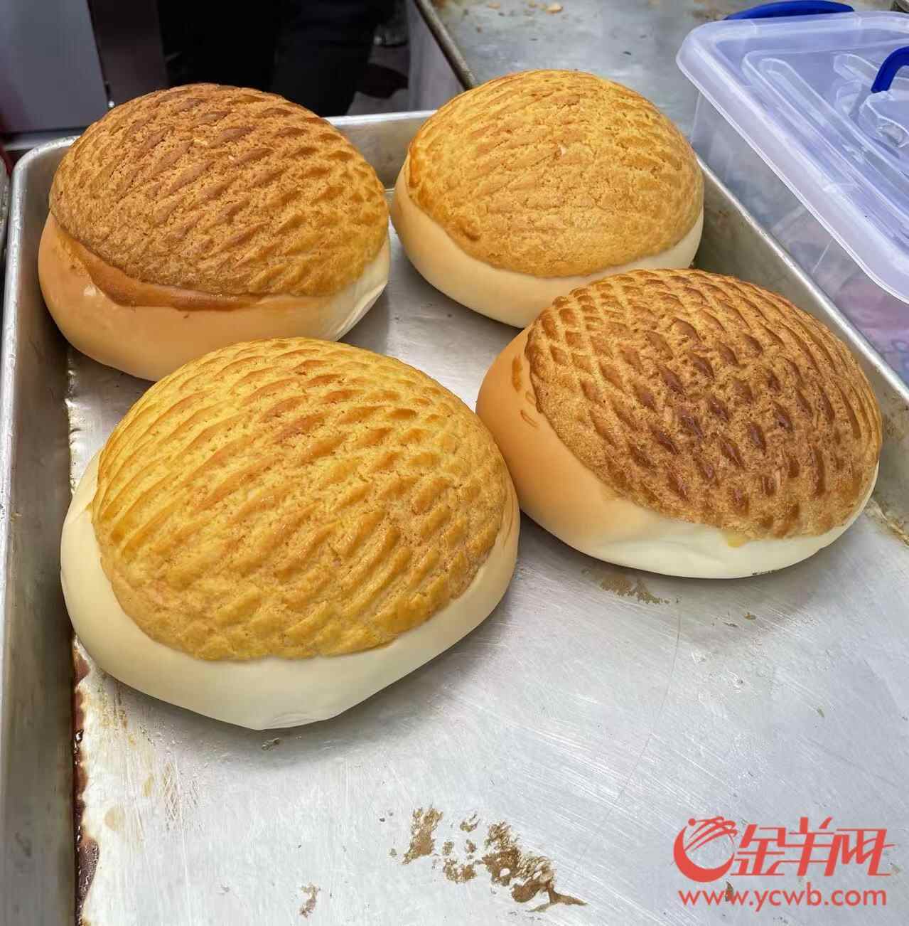 “菠萝包十分受欢迎,从上午至下午已售卖了上百个。”陈筱凤介绍,菠萝包有肉松口味和咖喱牛肉口味,与普通菠萝包不同的是,直径18厘米的菠萝包口感丰富。“菠萝包在制作过程中也考验着师傅的手艺。菠萝包的酥皮比普通菠萝包较为大,因此在制作过程中要小心处理,保留酥皮的完整性。”