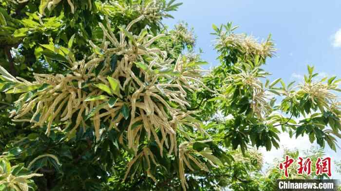 6月16日,在河北省秦皇岛市青龙满族自治县境内,百万亩板栗迎来盛花期,吸引游客拍照打卡。青龙满族自治县地处燕山深处,该县板栗栽培面积超百万亩,有“京东板栗之乡”美誉。图为青龙满族自治县栗花飘香,吸引游客观赏、拍照。张宝 摄