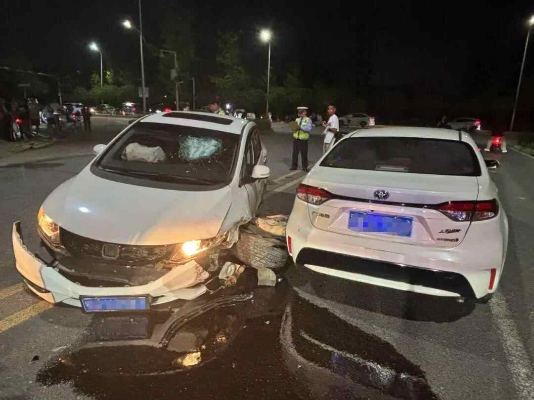 陈吉驾车追赶看到,肇事车压双黄线冲入对向车道,与迎面轿车相撞致左前轮脱落才停下,蒋仲超被巨大冲击力甩落地面后脑着地,鲜血直流。