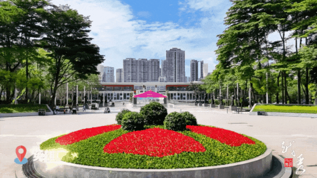 场馆的观众座位采用了四种不同的蓝色组成湾区环流的形象,此外还增加了广东红棉的红色、香港紫荆的紫色以及澳门莲花的绿色三种主色调,形成了活力湾区、激情全运的形象表达。