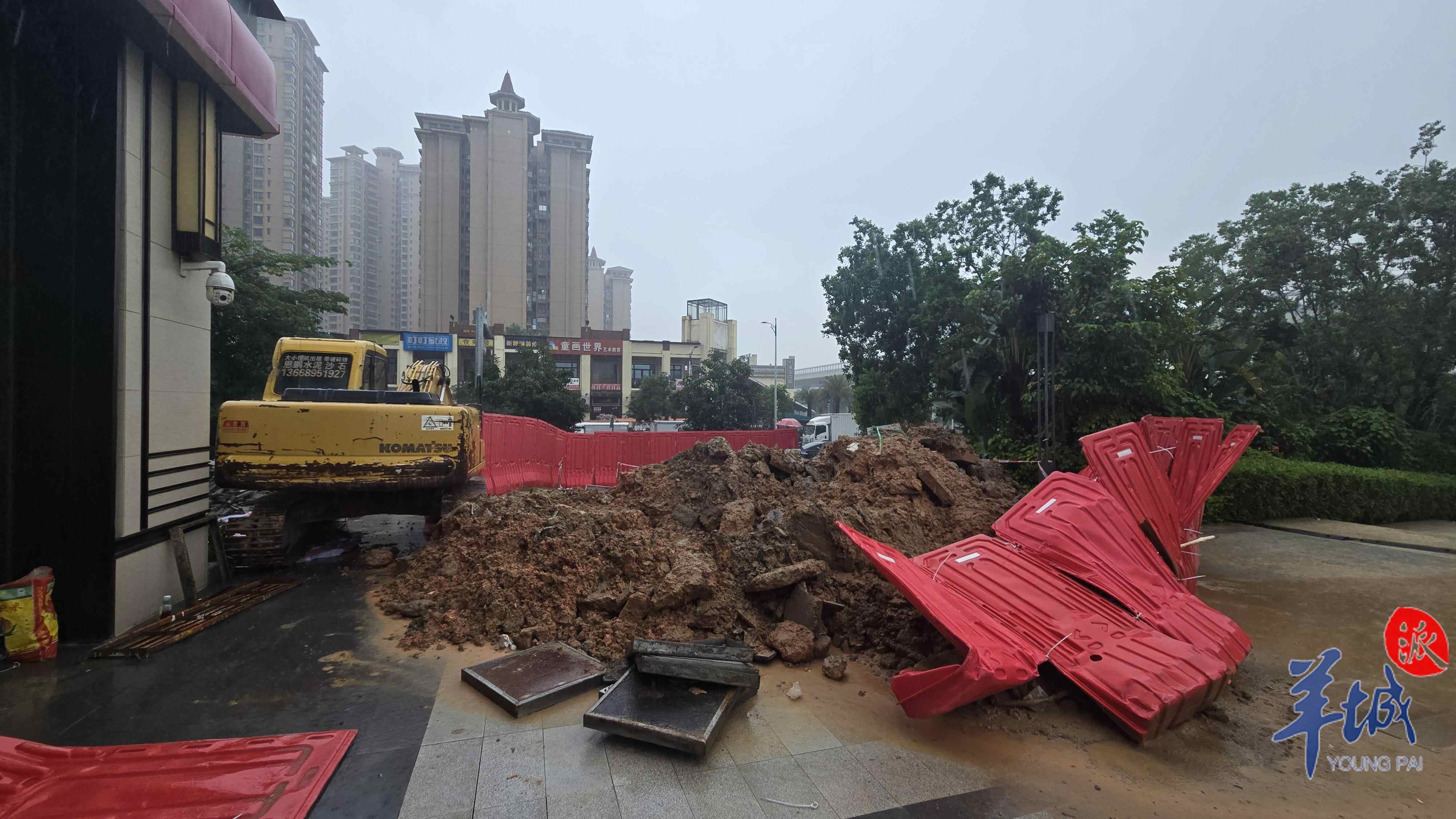据悉,增城区朱村街道已协调相关单位,并指导相关小区开发商制定了应急处置方案,正在进行抢修作业。现场塌陷面积约40平方米,深度约2.5米。街道回应,初步分析塌陷原因疑为该处地下排水管网错位造成水土流失,叠加连日暴雨,地下形成空洞,导致路面部分坍塌。