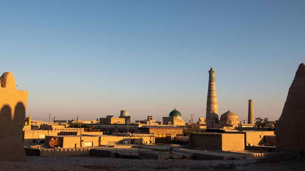 这是2023年9月21日拍摄的乌兹别克斯坦花拉子模州的希瓦古城。希瓦古城是古丝绸之路上重要的东西交汇之地,是乌兹别克斯坦第一处世界文化遗产。中乌合作开展希瓦古城保护修复工作,对古城内的阿米尔·图拉经学院和哈桑·穆拉德库什别吉清真寺及周围环境展开重点修复,让希瓦这座古城更加绚烂夺目。