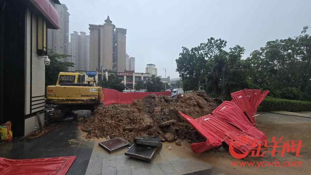 据悉,增城区朱村街道已协调相关单位,并指导相关小区开发商制定了应急处置方案,正在进行抢修作业。现场塌陷面积约40平方米,深度约2.5米。街道回应,初步分析塌陷原因疑为该处地下排水管网错位造成水土流失,叠加连日暴雨,地下形成空洞,导致路面部分坍塌。