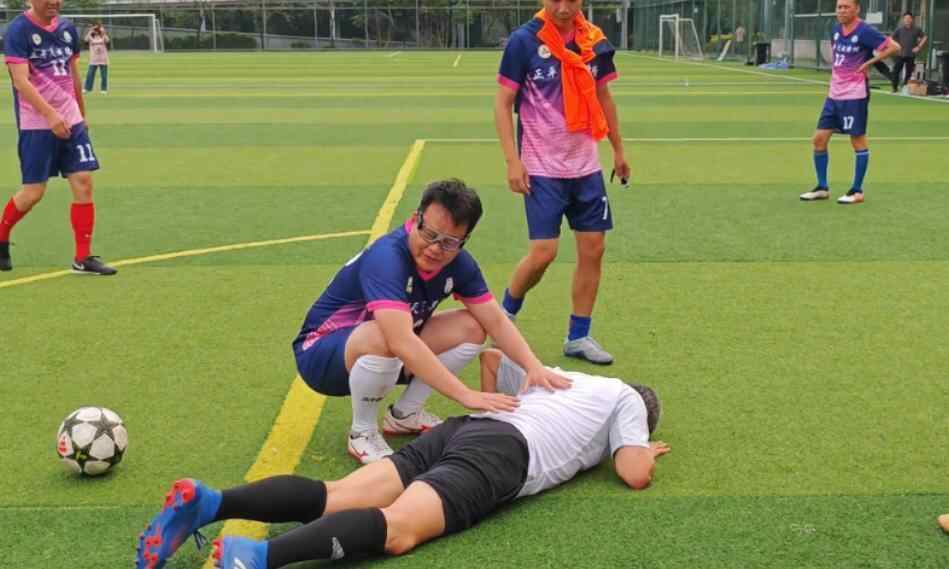 近日,央视主持白岩松踢球时不慎摔倒,躺在地上久久不起。