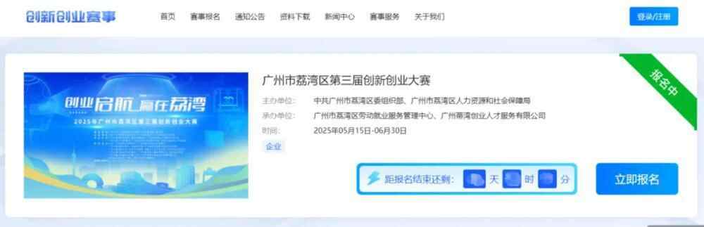 近日,由广州市人力资源和社会保障局、广州市荔湾区人民政府指导,广州市荔湾区人力资源和社会保障局、中共广州市荔湾区委组织部主办的广州市荔湾区第三届创新创业大赛(以下简称“大赛”)已启动报名,诚邀全国创新创业人才汇聚荔湾,共赴创业盛宴。