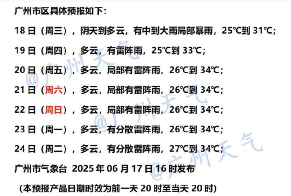 广东省气象台17日傍晚预计,18日起广东降水减弱,但粤西以及两广交界附近市县仍有中雨局部暴雨。预计19日起广东雨势进一步减弱,当天广东大部分市县多云有分散(雷)阵雨局部大雨。预计20日至21日,广东南部市县多云转(雷)阵雨局部大雨,其余市县多云为主有分散(雷)阵雨,其间中北部部分市县有35℃左右高温天气。广州市气象台17日傍晚预计,18日白天起随着副高加强控制,广州降水减弱,渐转多云天气为主,间中有雷雨,高温炎热渐显。预计广州市区最高气温,将从18日的31℃逐渐升至20日起的34℃。