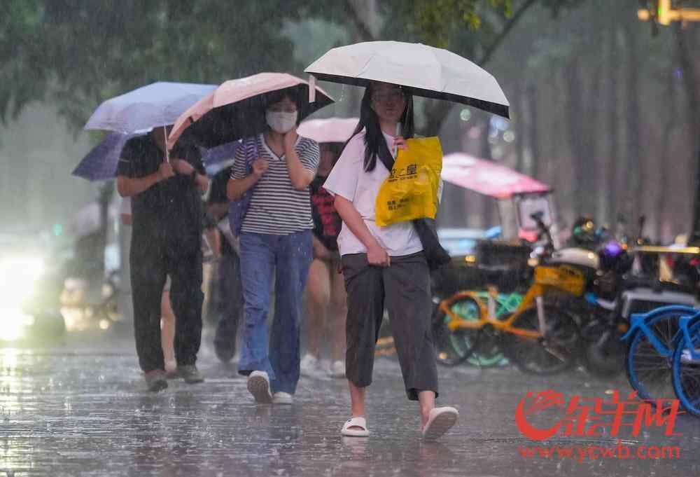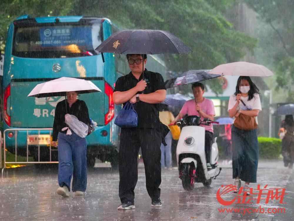 记者在17日晚高峰的广州街头看到,不少市民在上有暴雨下有积水的环境中冒雨下班。雨伞难挡雨水,脚下换穿拖鞋或者用塑料袋包裹鞋子踏水出行。